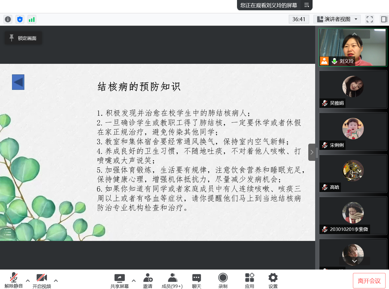 开学首周各班充分利用互联网云平台,以各班级团支部为单位组织开展学习教育活动。紧密结合冬奥会胜利举办、冬残奥会即将召开、俄罗斯与乌克兰冲突等国内外时事热点,有针对性对学生进行思想教育引导,明确教育学生听党话,跟党走。总结上学期学生学习情况,开展学风评比活动,表彰先进,倡树典型,为新学期的学习开好头。此外,辅导员老师也根据学生需要,进行考证、实习等方面答疑,开展安全法制教育、春季常见流行病的预防教育、心理健康教育等活动。