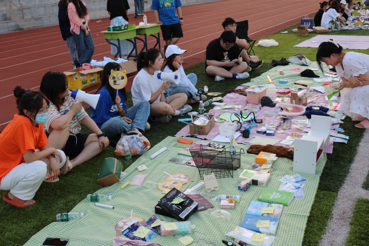 夏至未至,大二的学长学姐们纷纷练摊儿做生意,在“跳蚤市场”里卖出一件一件伴随他们在校时光的物品。看着川流不息的人群,即将离别的伤痛之感一瞬之间被这火爆的气氛所淹没,取而代之的是一股新鲜,一片欢乐。片刻,大一的同学们也积极的加入了这场活动,在这里,各类二手商品应有尽有,新奇独特,同学们将自己闲置的东西进行转让售卖,如化妆盒,鼠标,毛绒玩具,裙子,高跟鞋,漫画书等应有尽有。
