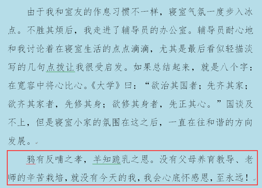 本次活动为学生感恩老师的辛勤付出、感恩老师的谆谆教诲、感恩老师的无私奉献提供了很好的平台,也让每位教师不断完善自我,努力做塑造学生品格、品行、品味的‘大先生’。如此洒满爱的阳光的校园,必将桃李芬芳,充满民族复兴的希望!