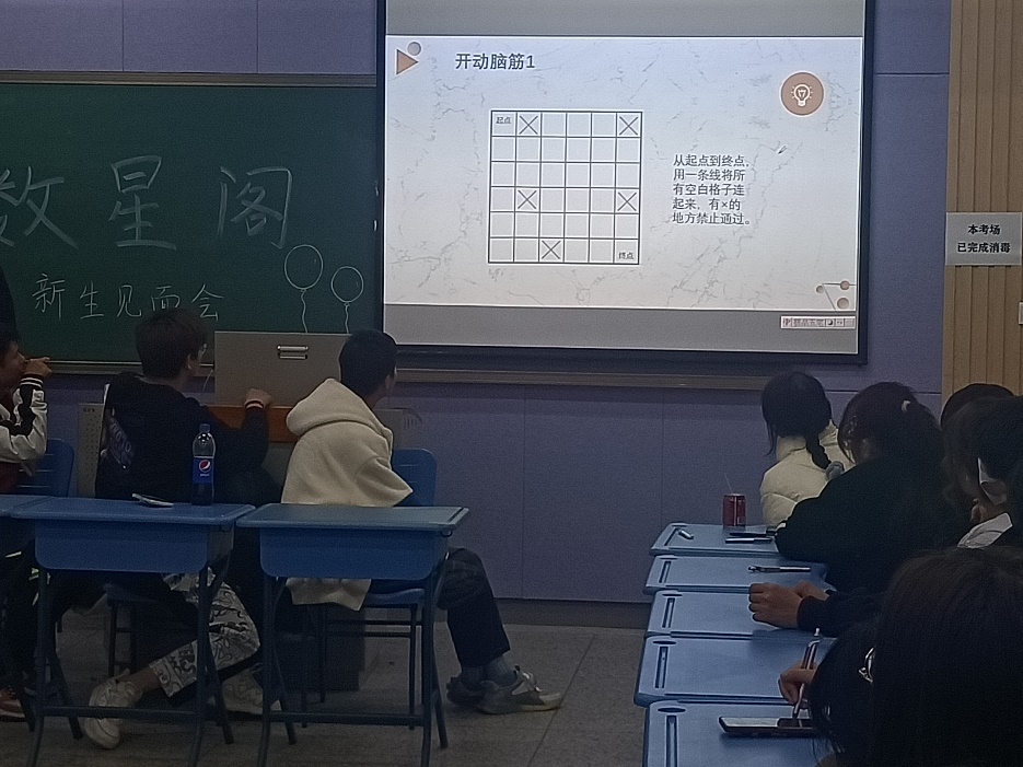 11月2日18:00-19:30在厚生楼215教室,数星阁社团开展了新学期第一次社团活动新生见面会。本次活动由社长姜观杭、副社长王飞扬、组织部部长张申奥及宣传部部长沈盼盼组织,参加本次活动的成员为社团部分2022级新成员及部分2021级成员,活动主要分为4个环节开展。