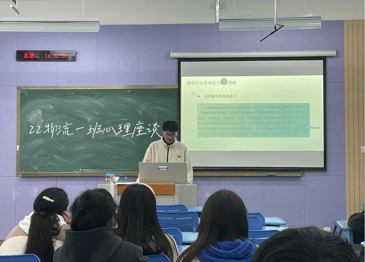 为积极响应学校“校园健康生活月”活动,让同学们了解生命孕育的艰辛,认识到生命的可贵,从而珍爱生命、健康成长,11月22日、25日下午,星空平台22级现代物流管理1班、2班在厚生楼开展“关爱自己、呵护生命”心理主题班会,班会由心理委员石家乐、王佳主持,班级全体学生参与。