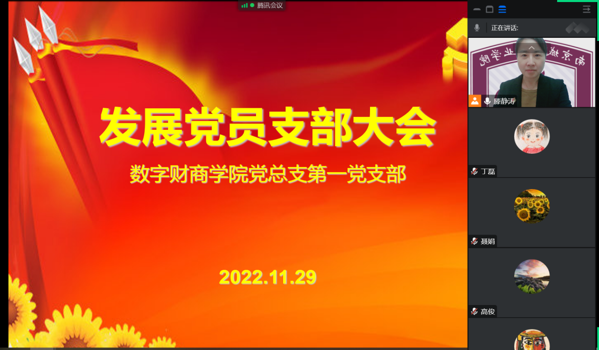 2022年11月30日,经院党总支批准,星空平台第一党支部通过腾讯会议召开了预备党员发展大会。此次大会由党支部滕静涛书记主持,第一党支部17名党员及发展对象参加会议。