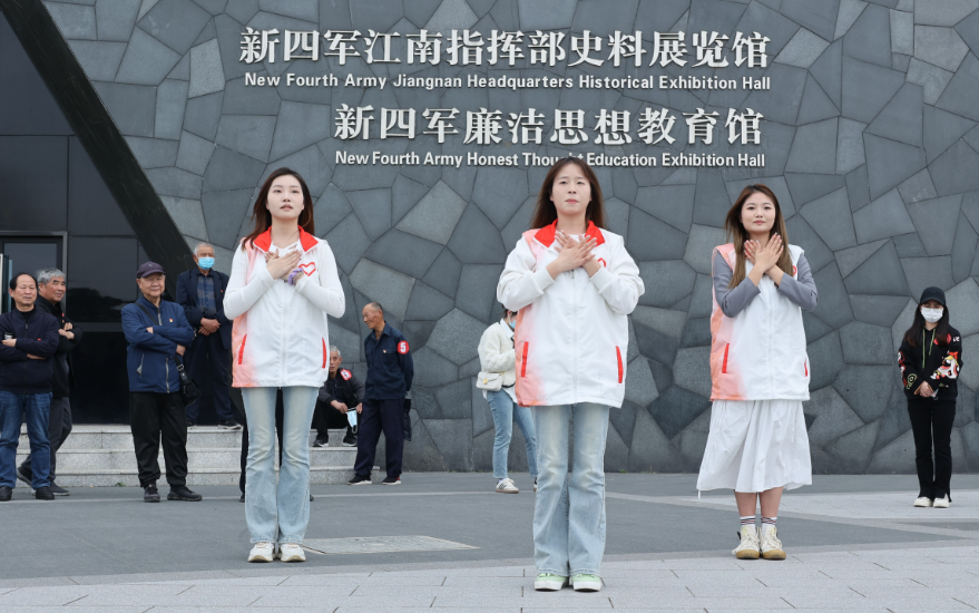 下午,志愿者分成5组,分别陪同一个党支部的党员参观新四军江南指挥部纪念馆。参观途中,志愿者们搀扶老党员,与老党员亲切交谈,听老一辈讲述自己对抗战的感悟。大家通过馆内陈列展品,回顾抗战之艰辛,更加深刻了解新中国成立之不易,更加牢记党的宗旨。不少志愿者表示:“通过参观学习,更加坚定要加入中国共产党,为建设祖国、服务祖国贡献自己的力量。”