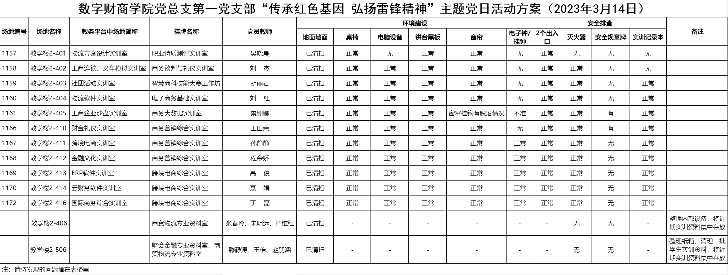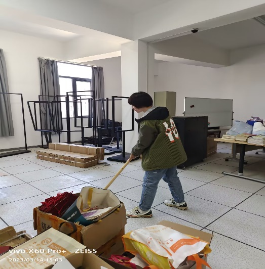 活动前,支委会专门开会研究了活动方案,在超星支部网络党课中发布通知。当天,支部书记主持召开会议强调活动意义和要求。本次义务劳动以小组包干负责制的形式开展,每组1名教师党员带若干名发展对象和积极分子,共13组,对溧水校区厚生楼4楼实训室以及2个储藏室进行环境卫生保养及安全隐患专项检查。党员教师们带领学生,进行了卫生打扫、调整桌椅、整理存放物资材料、检查电脑设备、安全排查等工作,并将劳动所得信息整理成表格,以便后续反馈给相关部门加强对实训室的管理。