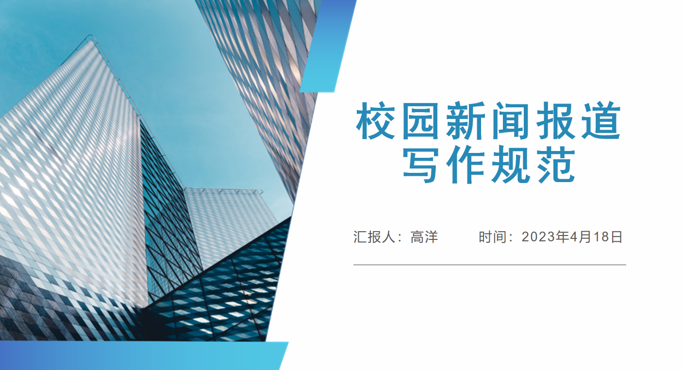 高洋以《校园新闻报道写作规范》为题,结合自身新闻稿件撰写工作经验、当前新媒体新形势发展要求及教育新闻宣传思想工作实际,从宣传工作规范要求着手,进行了深入浅出的讲解。