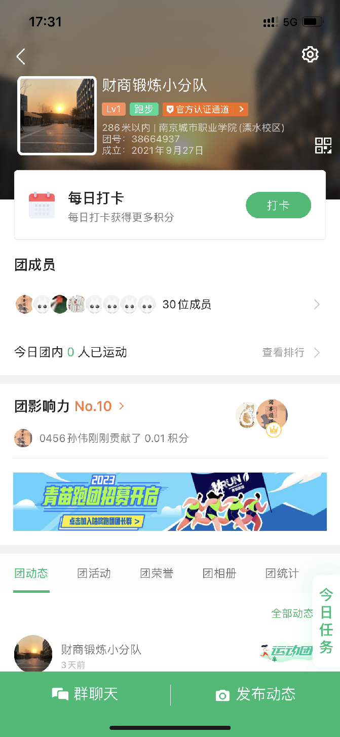 为进一步推进全民健身运动的开展,提高我院教职工身体素质,展现团结向上、砥砺奋进新面貌,促进和谐校园文化建设,星空平台分工会通过咕咚APP开展了“强身健体,幸福你我”健康打卡活动。