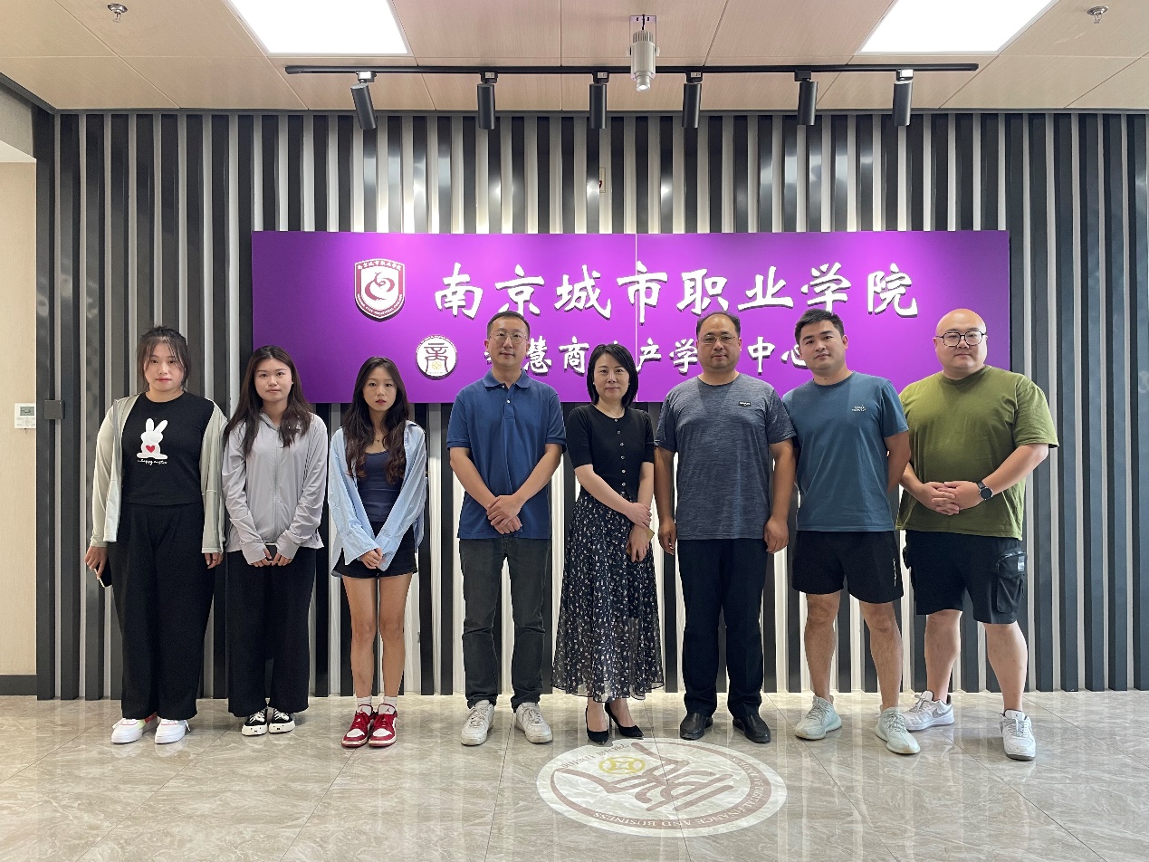 为了进一步深化产教融合,拓展学生实习就业岗位,提升专业服务地方经济的能力,8月31日江苏省沿海农业发展有限公司电商部经理戴治静、孙翔一行受邀来星空平台智慧商业产学研中心,对前期达成的“校中厂”项目——助农电商进行考察交流。星空平台副院长丁亮、江苏百伦斯科技有限公司总经理助理俞凡、专任教师邵予晴和闻知九负责接待,项目实习学生代表共同参与。