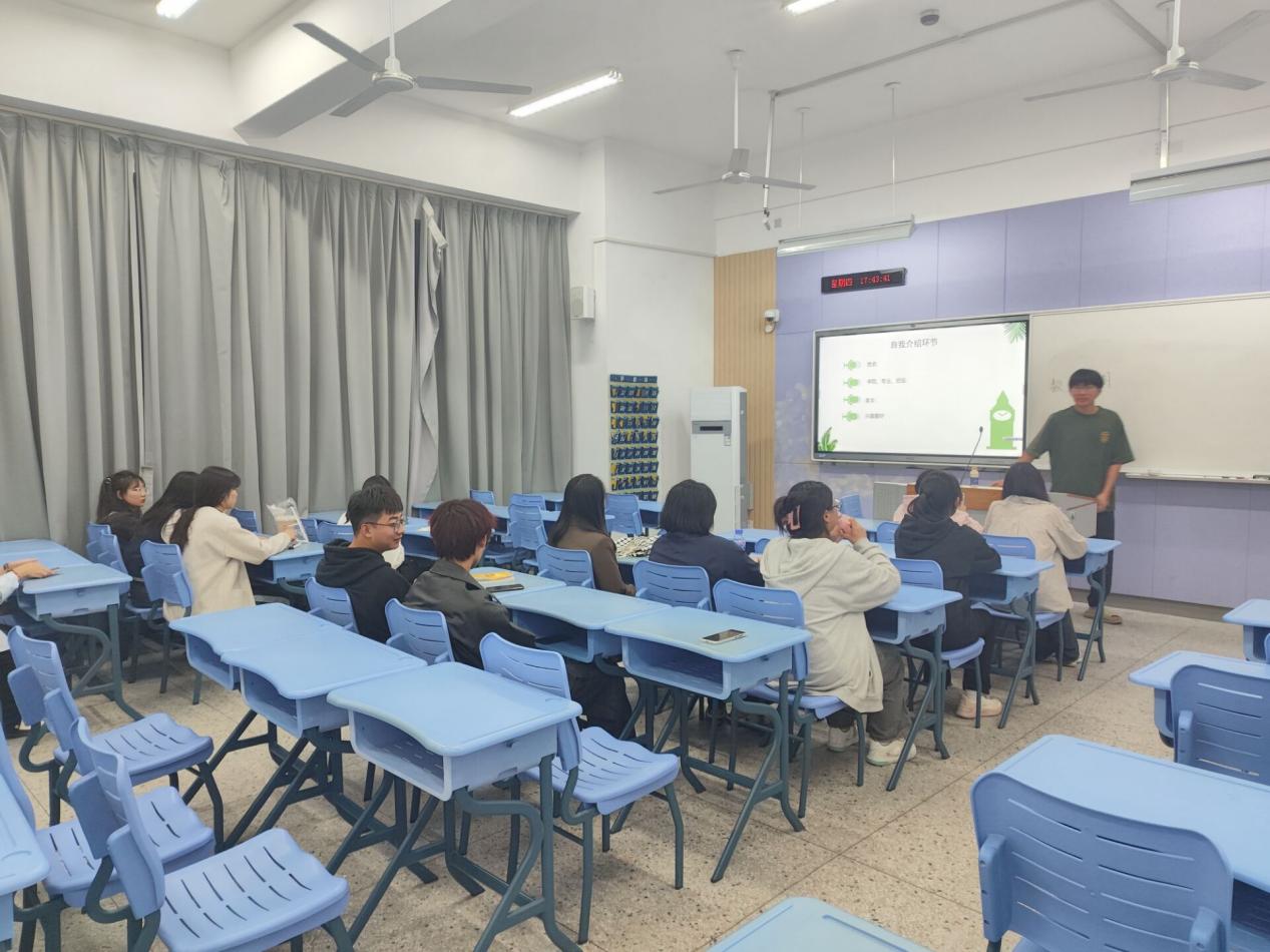 第一个环节是破冰行动、自我介绍。本环节由主持人郭冉冉和潘云首先介绍自己及其他社团骨干成员,然后依次由其他参与成员介绍自己,主要包括姓名、班级、爱好等。简短的自我介绍可以让同学们相互有一定的了解,有相同爱好的同学也会有更多的共同话题,对同学们相互熟络感情也有帮助。