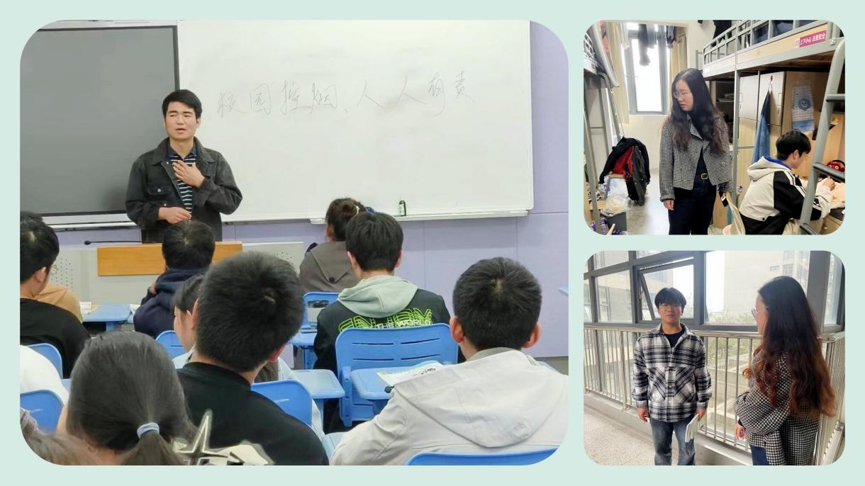 2023级新生刚进入校园生活,其世界观、人生观、价值观仍然处于可引导阶段,因此对2023级新生应“重点抓、常常抓”。2023级年级负责人曹敏洁老师以宿舍为抓手,以宿舍查寝记录为依托,对2023级新生采取深入宿舍点对点监督的方式,提高监督频率,提升控烟效果。通过实习走访、抽烟现象记录、点对点约谈等方式,向学生普及控烟知识,让他们充分认识到吸烟的危害,并自觉抵制诱惑,远离烟草。通过鼓励学生多参与学校各项学生活动,通过人际交往提升自我肯定,帮助学生树立健康的生活理念,远离烟草的侵袭。在做好宿舍巡查工作的同时,开展专题班会,引导学生树立正确的生活观,进一步促进校园控烟工作的落实和有效性,同时也提升学生的健康意识,引导他们养成良好的生活习惯。