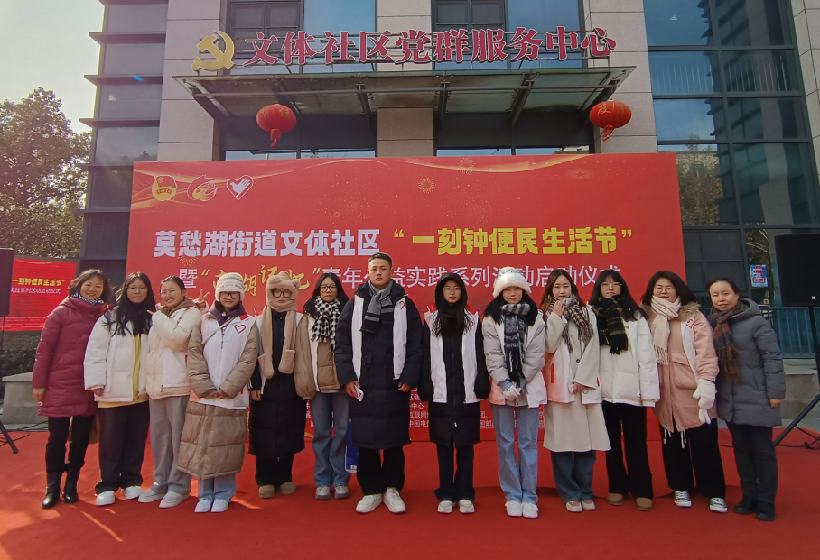 为发挥文体社区“南湖记忆”街区作为新职业互联网营销师公益实训基地的平台作用,引导青年大学生参与基层社会治理、提升专业技能,12月23日上午,星空平台青年志愿者协会在院党总支书记、院长刘红和院党总支副书记、副院长刘晓艳的带领下,参加了莫愁湖街道文体社区“一刻钟便民生活节”暨“南湖记忆”青年公益实践系列活动启动仪式。