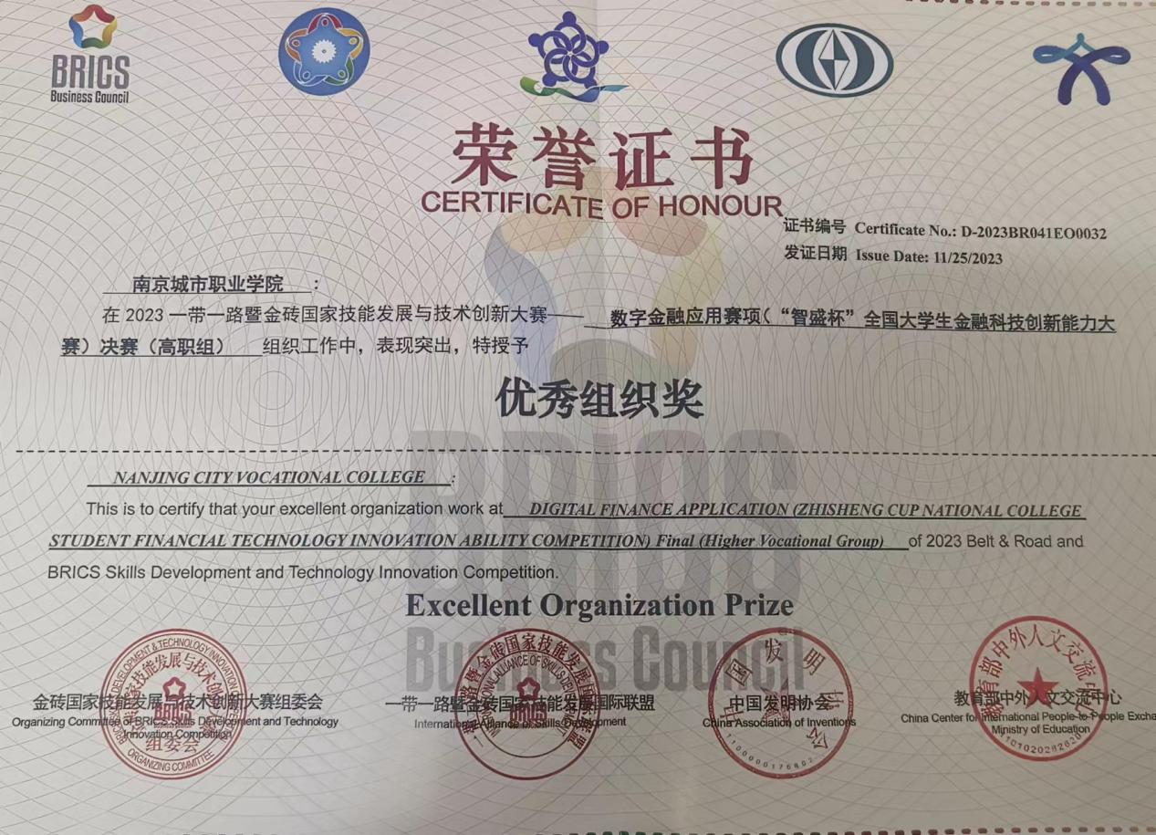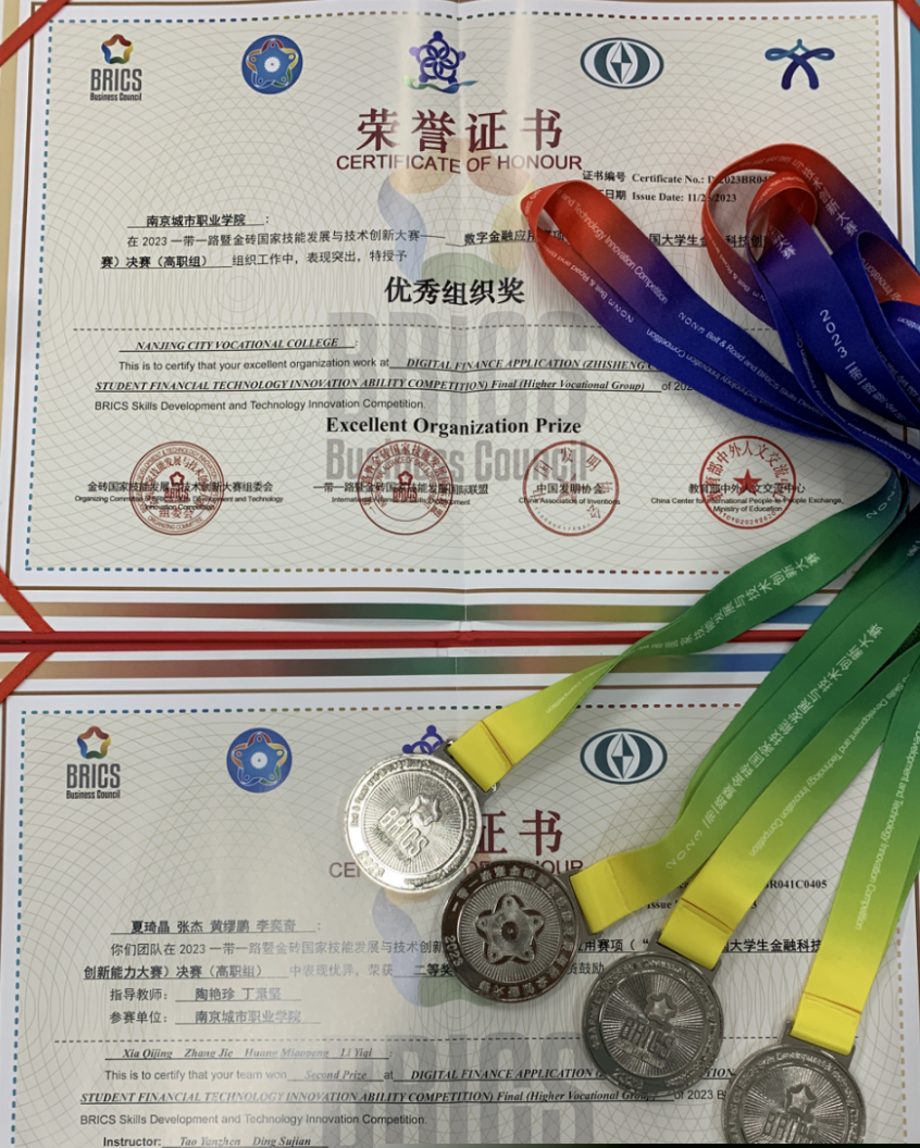 2023年11月25日,2023一带一路暨金砖国家技能发展与技术创新大赛数字应用赛项全国总决赛圆满落幕。我校星空平台学生李奕琦、夏琦晶、黄缪鹏、张杰组成的代表队入围全国比赛队伍前20%,最终获得了高职组国家二等奖,江苏省高职院校排名第一的优秀成绩。学校因组织赛项表现突出,获得了优秀组织奖。