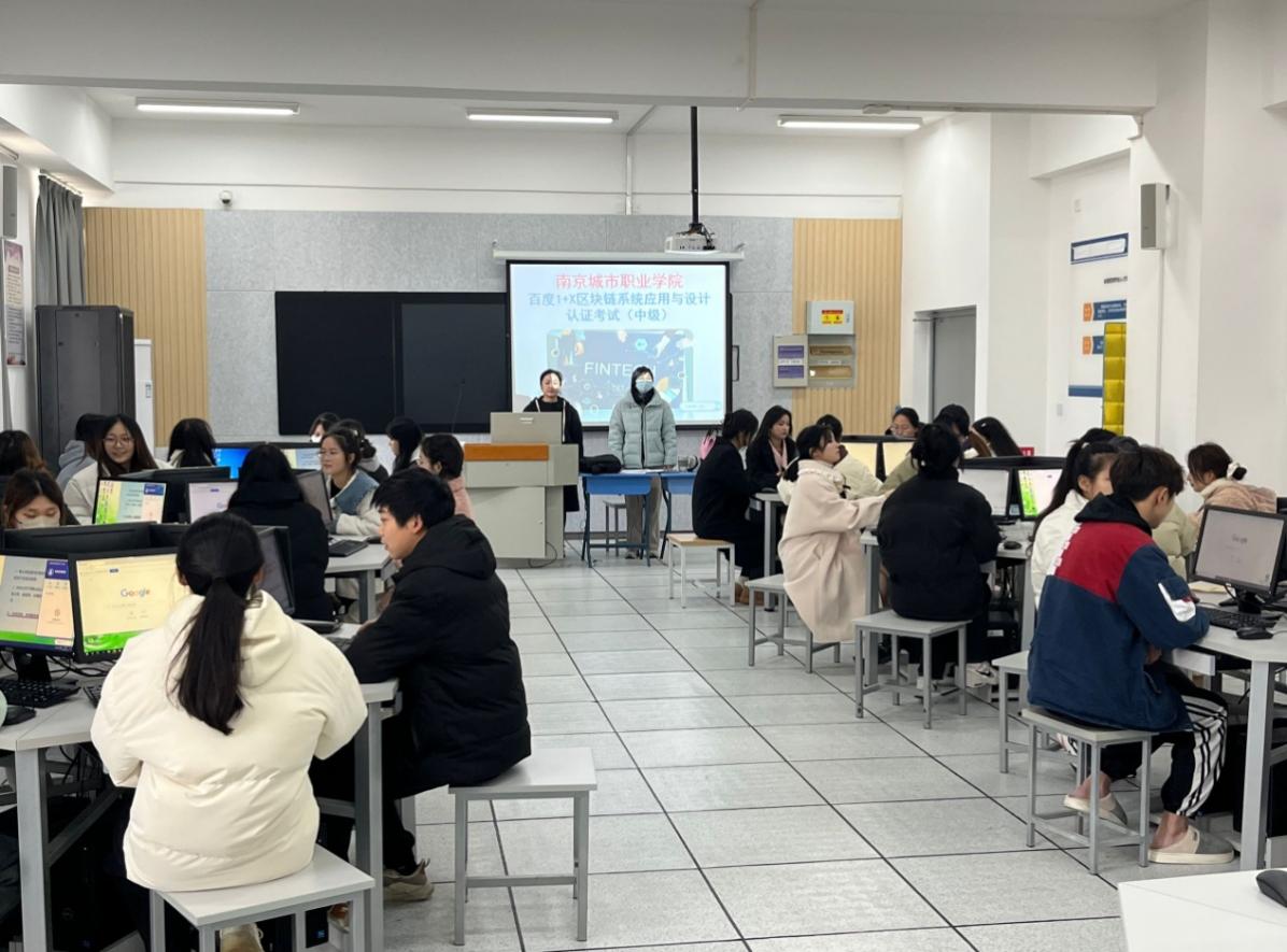 12月30日下午,星空平台组织开展“1+X”区块链系统应用与设计职业技能等级(中级)考试,来自2022级金融服务与管理专业40名学生参加了考试,财会金融教研室汪洋、丁素坚、吴娟老师负责本次考试考务工作。