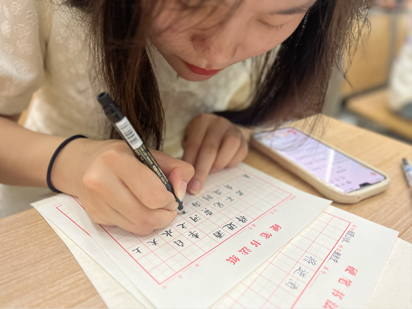 比赛现场,选手们屏息凝神专注地挥洒着墨香,一幅幅精美的作品跃然纸上,有的选手擅长行书,笔走龙蛇,矫健有力;有的选手偏爱篆书,圆劲均匀,富有奇趣;有的选手钟爱楷书,端庄秀丽,一丝不苟……学生们以认真的笔端,一笔一划,诠释了对书法的理解和热爱,流露出他们对汉字的独特感悟和对中国传统文化的深深敬意。