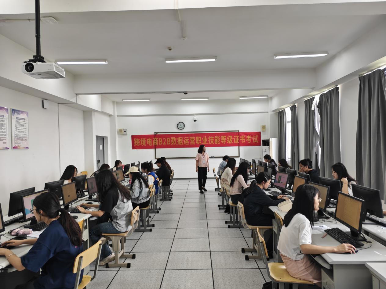 2024年6月23日14:00-16:00, 1+X跨境电商B2B数据运营职业技能等级(中级)全国性统一考试在我校厚生楼402机房有序开考。我校22跨境电子商务、23跨境电子商务专业的20名同学参加了本次考试。