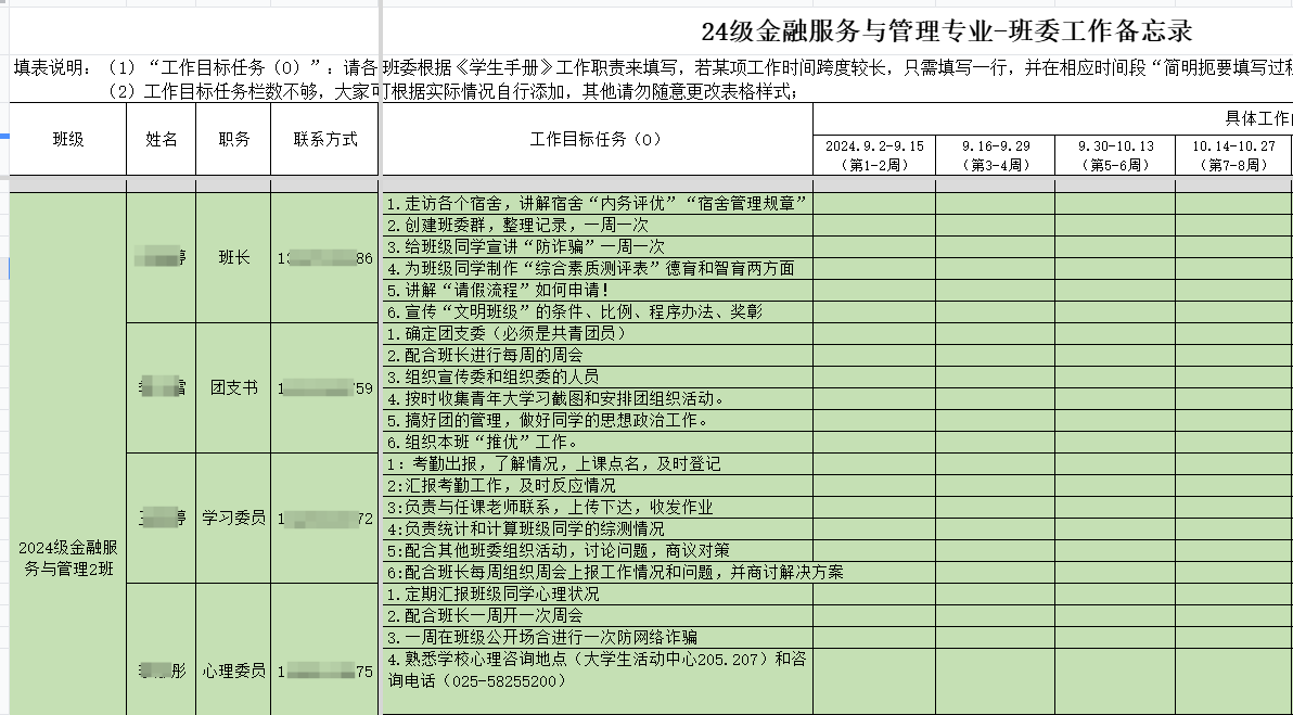 此次例会重点聚焦班级管理新方法进行深入探讨。其中重要举措之一是指导班干部制定清晰明确的目标任务以及具体的工作计划,并整理形成班委工作备忘录表,促使班干部在履行职责过程中不断成长。该备忘录表既能记录他们工作的每一步进展与成果,方便班干部进行自我评估与反思,又能为其他班干部提供宝贵的学习范本。通过持续实践,班干部们能够在这个过程中不断成长进步,从而更好地发挥自身作用,为班级的良好管理以及同学们的成长贡献更多力量。后续工作中,辅导员将积极引导班干部科学合理地制定目标任务与工作计划,并定期检查评估其工作进展,鼓励班干部之间加强交流与合作,共同探寻解决问题的最佳途径。