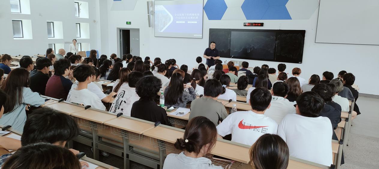 最后,跨境电商龙头企业焦点科技股份有限公司市场培训部政府高校项目经理杨立以“企业视角下的跨境电商行业现状及发展机遇”为题给同学们做了一场别开生面的行业启蒙。第一,杨经理以案例的形式介绍了当前跨境电商出口产品,主要包括机械设备和器械、各类电子产品、纺织品和服装以及化工产品。同时以国产电动三轮车(即“三蹦子”)广受美国居民喜爱为例,说明了我国产品在国际市场上有广阔的发展空间。第二,杨经理分析了跨境电商人才需求现状,启发同学们如何开启跨境电商专业生涯。呼吁同学们认真学习,勤于实践,提升语言能力和综合能力,必能在跨境电商行业大有可为。杨经理的讲座融合了当前网络热点视频等多媒体素材,讲解生动有趣,频繁互动中进一步提高了同学们的专业自信。