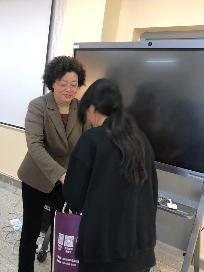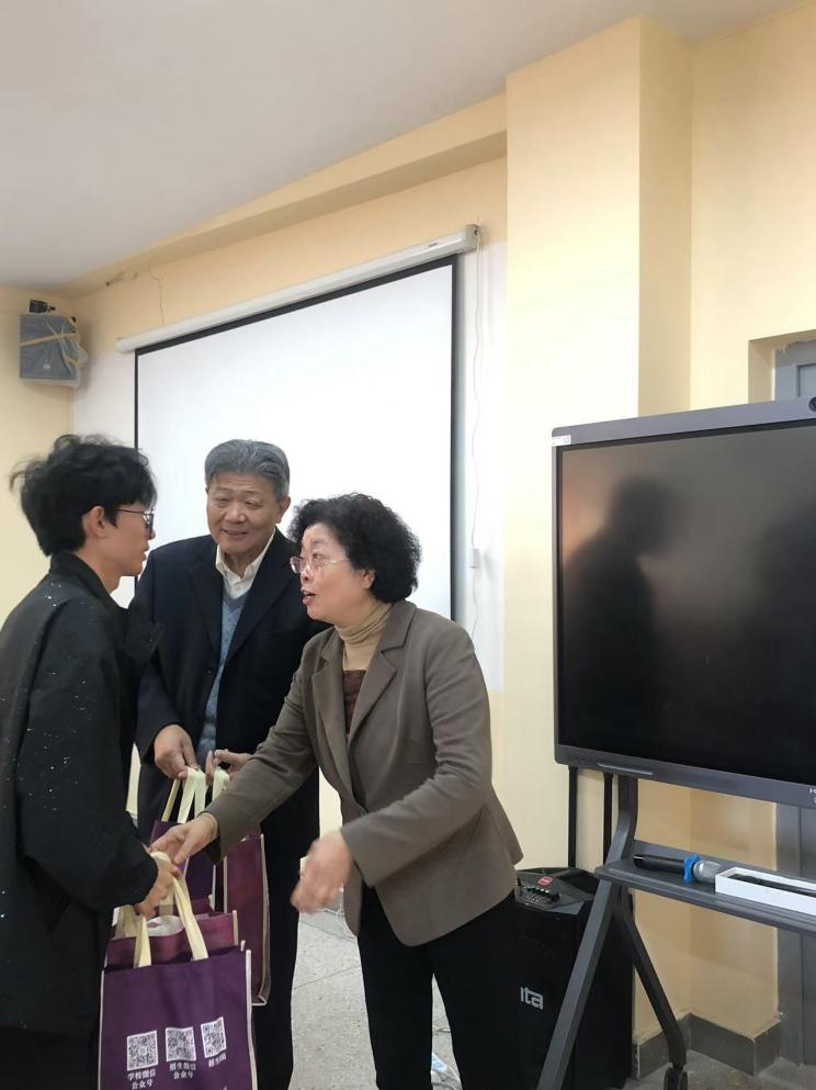 活动中,路业用“健康成长”这四个字深情表达了对学生的深切关怀和美好祝愿,希望同学们在确保身心健康的前提下全面发展。同时,他鼓励同学们继承和发扬攻坚克难的精神,在逆境中磨砺自信、自立、自强的品质,努力成为一名对家庭和社会有用的新时代好青年,为中华民族伟大复兴贡献自己的青春力量。随后,刘晓艳勉励同学们珍惜当下、把握机遇,通过刻苦学习和自我提升,为未来奠定坚实的基础,在梦想的指引下勇敢追梦,拥抱美好的未来。最后,两位老同志向困难学生代表发放金秋暖心大礼包,并与同学们一一进行了亲切交谈,进一步传递了组织的关怀与鼓励,活动现场温馨而真挚。