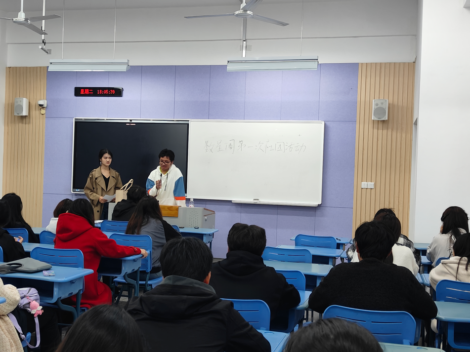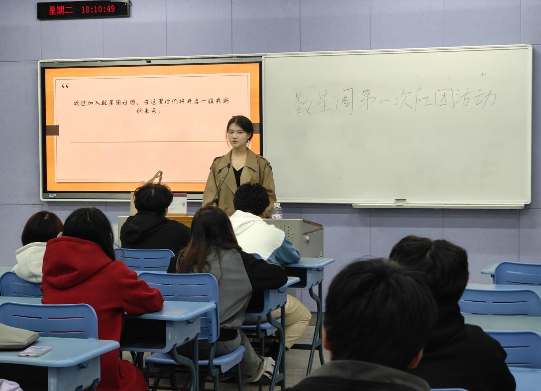 2024年10月22日下午六点在厚生楼206教室,数星阁社团开展了新学期第一次社团活动——新生见面会。本次活动由社长钟怡文、副社长姜鑫玉、宣传部部长杜天怡组织,活动主要分为4个环节开展。