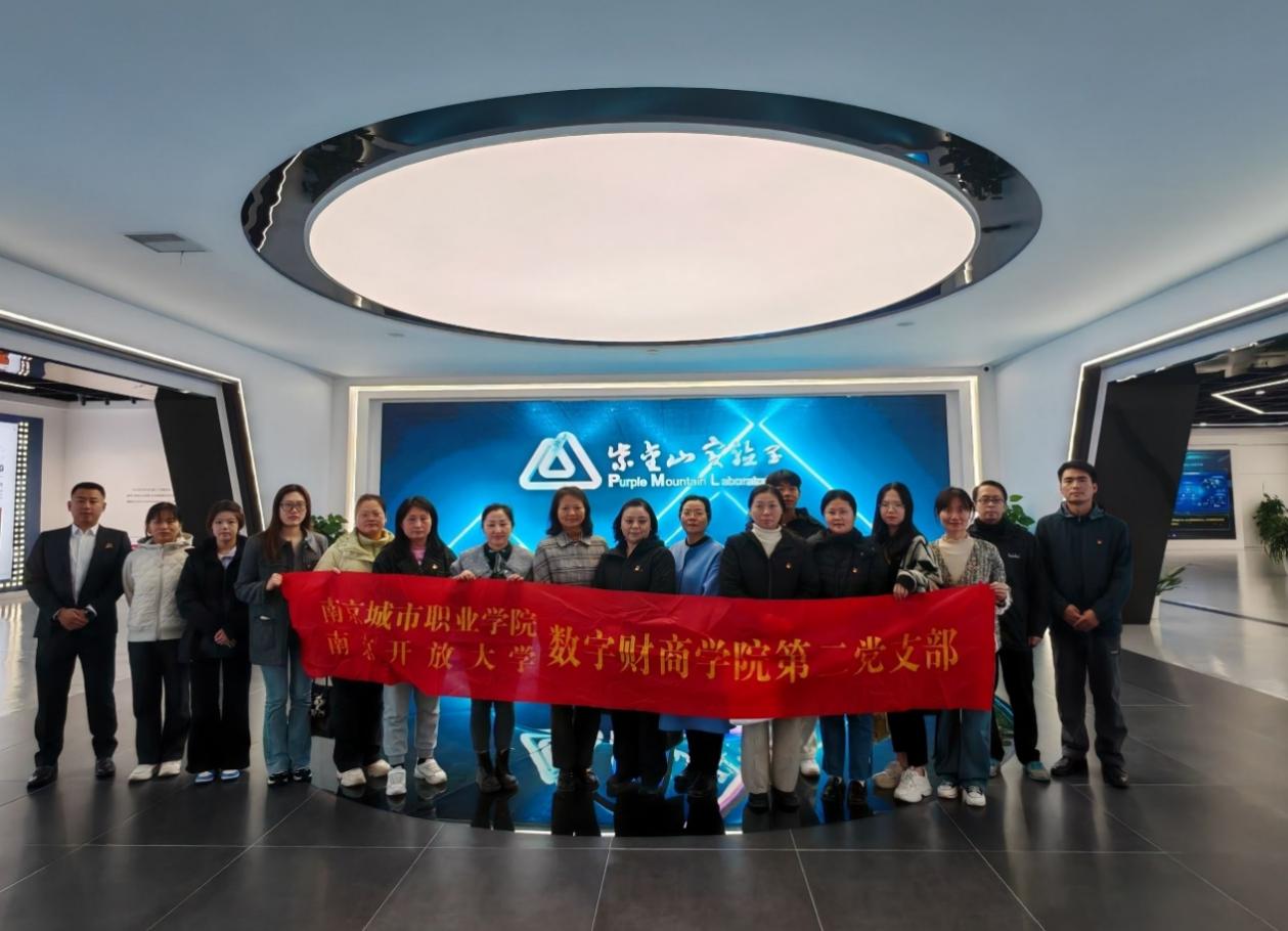 活动当天,星空平台党总支第二党支部党员、财会金融教研室部分教师、第二党支部学生发展对象等首先在紫金山实验室进行参观交流。作为国内顶尖的科研机构,紫金山实验室在网络通信、人工智能等领域取得的卓越研究成果,充分展示了科技创新的强大力量。这些技术的广泛应用及其未来发展蓝图,为同志们提供了教育与科技深度融合的全新视角和启迪。