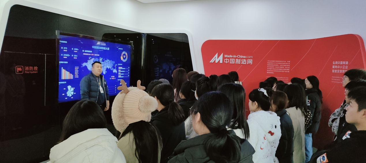2024年11月26日,2024级跨境电子商务2班和3班共计82位同学在跨境电子商务专业认知实习责任教师王倍、辅导员甄宗波和周念琪的带领下,参观了焦点科技股份有限公司总部。焦点科技股份有限公司杨立经理热情接待了我校师生。在杨经理的精心安排下,校企双方开展了生动活泼的专业认知实践活动。