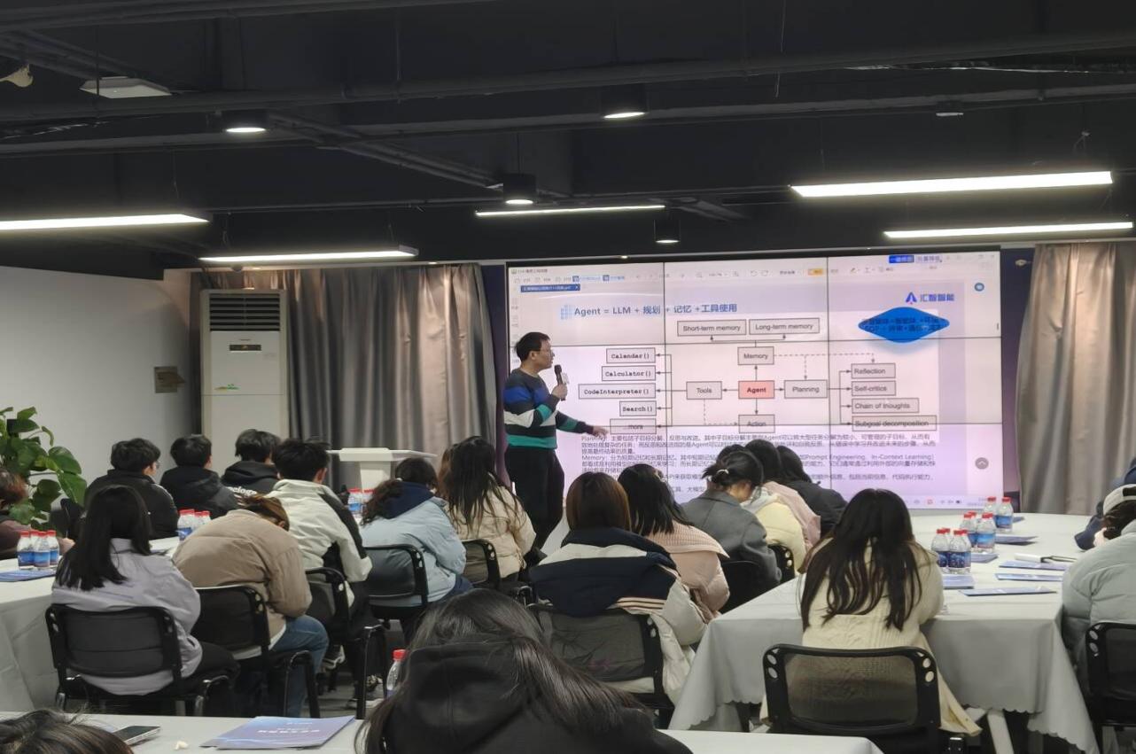 江苏汇智智能数字科技有限公司成立于2020年11月18日,是南京汇智互娱集团旗下的一家专注于人工智能的企业。公司致力于用人工智能赋能个人与企业,自研了Carrot AI大模型,并打造了Gnomic智能体平台和Agent云智能体云服务平台,为用户提供智能体创建服务。同时,通过微言大义研发中心,为AI行业输送创新人才。在汇智赵总的带领下,学生们详细了解了公司的基本情况和运营模式;技术总监详细介绍了公司在人工智能领域的最新研发成果及市场扩展情况,展示了Gnomic智能体平台和Agent云智能体云服务平台,使师生们深刻体会到了商务数据分析在电子商务、金融、文旅等行业中的广泛应用。