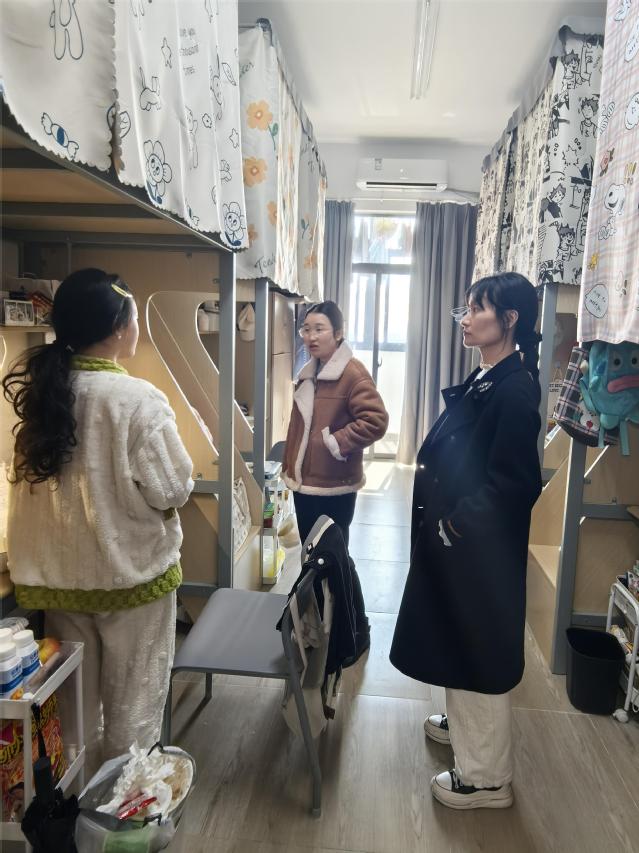 实习期间,学生们面临职场与学业的双重挑战,压力倍增。辅导员们心系学生,踏入宿舍,首先聚焦安全问题。辅导员们仔细查看每间宿舍的电器设备、电线线路,对存在安全隐患的地方及时指出并提醒学生整改,严肃强调:宿舍安全不容忽视,一个小小的疏忽都可能引发严重的火灾事故,务必遵守学校规定,不使用违规电器,保持插线板周围整洁,做到人走断电。对于正在实习的学生,辅导员们与他们展开了深入交流,针对同学们实习期间的工作内容和职业发展规划存在的困惑,辅导员结合自身经验和行业动态,为同学们答疑解惑,同时对于部分同学在积极备站专转本考试,辅导员们为同学们带来了最新的考试资讯,并分享了高效的学习方法,鼓励学生保持良好的心态,制定详细的学习计划,合理分配实习与学习的时间。