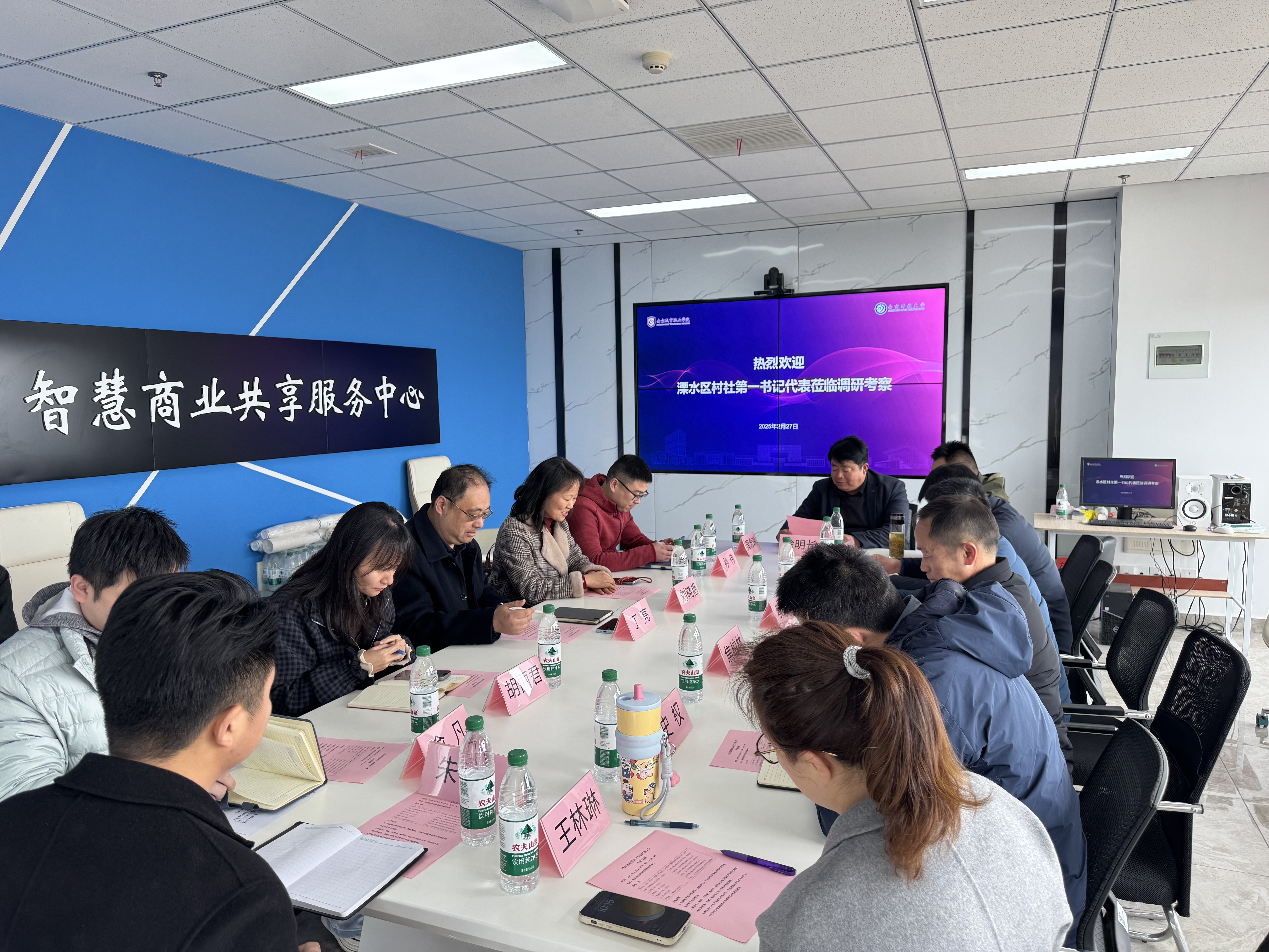 为深入贯彻落实乡村振兴战略、深化校地协同创新,星空平台诚邀溧水区石头寨村等五位驻村第一书记围绕“共建助农电商村校联盟,赋能乡村振兴新路径”主题,于2025年2月27日上午在我校科创楼智慧商业产学研中心会议室召开村校对接推进会。星空平台党政领导、企业代表与溧水区石头寨村、白龙村、芮家社区、浮山村、东泉村驻村第一书记参会。