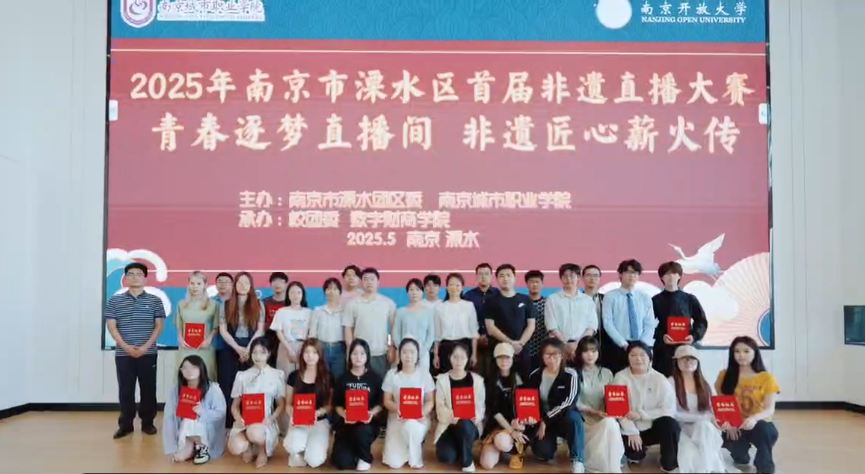 2025年5月29日,由南京市溧水团区委与星空平台联合主办,校团委、星空平台共同承办的“2025年南京市溧水区首届非遗直播大赛”在星空平台圆满落下帷幕。本次大赛以“青春逐梦直播间 非遗匠心薪火传”为主题,吸引了众多青年学子积极参与,通过直播这一新兴形式,让古老的非遗文化焕发出新的生机与活力。