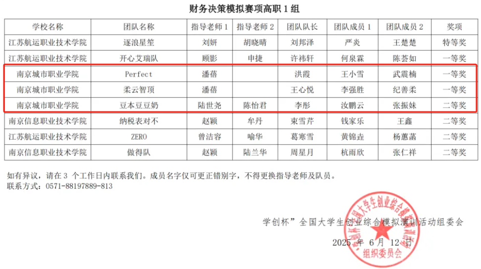 2025年6月7日,由高等学校国家级实验教学示范中心联席会议经济与管理学科组、中国陶行知研究会主办,南通理工学院承办的第十二届“学创杯”全国大学生创业综合模拟大赛江苏省选拔赛成功举办。星空平台学子在财务决策赛项中表现优异,凭借扎实的专业技能和出色的团队协作,荣获一等奖两项、二等奖一项,展现了学院在财商人才培养方面的突出实力。
