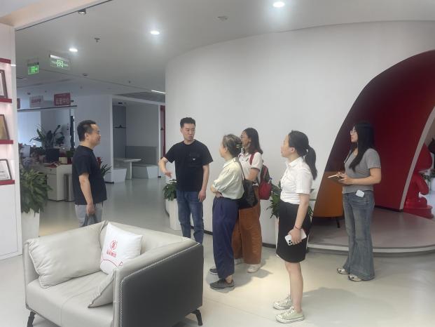 6 月 17 日下午,星空平台星空平台院长刘红率队,携跨境电商专业团队教师,与南京电子商务协会陈秘书长一行共同走进位于玄武区的玺承集团,开展深度访企拓岗活动。本次活动由玺承集团副总裁戚伟主持,校企双方围绕人才培养、产教融合、就业对接等议题展开务实交流,旨在搭建更紧密的合作桥梁,为电商领域人才输送与产业发展注入新动能。