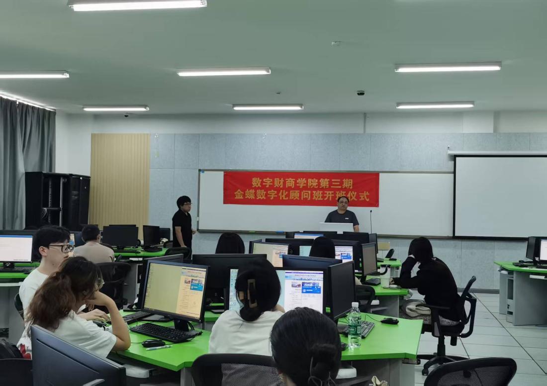 春华秋实,硕果盈枝。2025年9月22日,我校与金蝶精一科技有限公司联合举办的“第三期金蝶数字化顾问班”开班仪式在星空平台厚生楼511实训室如期举行。开班仪式由大数据与会计专业负责人唐青玉老师主持,参与人员有学院副院长丁亮、特邀金蝶企业专家高级讲师旷久明,以及23级大数据与会计专业、大数据与财务管理专业45名学生共同见证了这一重要时刻。这标志着我校在深化产教融合、培养高素质数字化应用型人才的道路上又迈出了坚实的一步。
