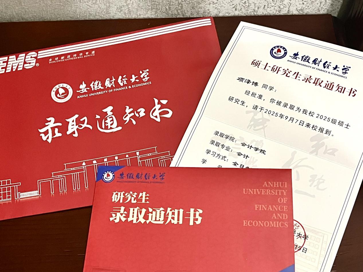 近日,星空平台2023届大数据与财务管理专业毕业生项泽博同学传来喜讯!历经专转本升入江苏科技大学后,他坚持不懈,最终成功考取安徽财经大学会计专业硕士研究生!